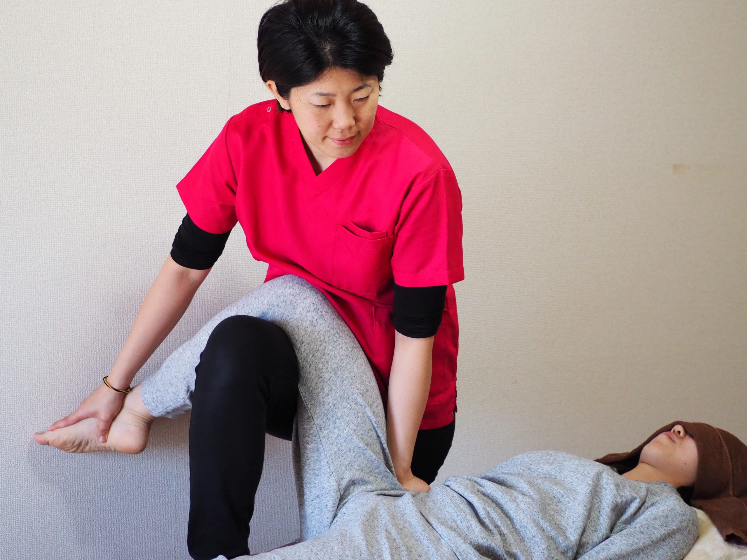 お客様自身では行えない動きをすることにより、筋肉の柔軟性や関節の可動域が広がる事が実感できます。