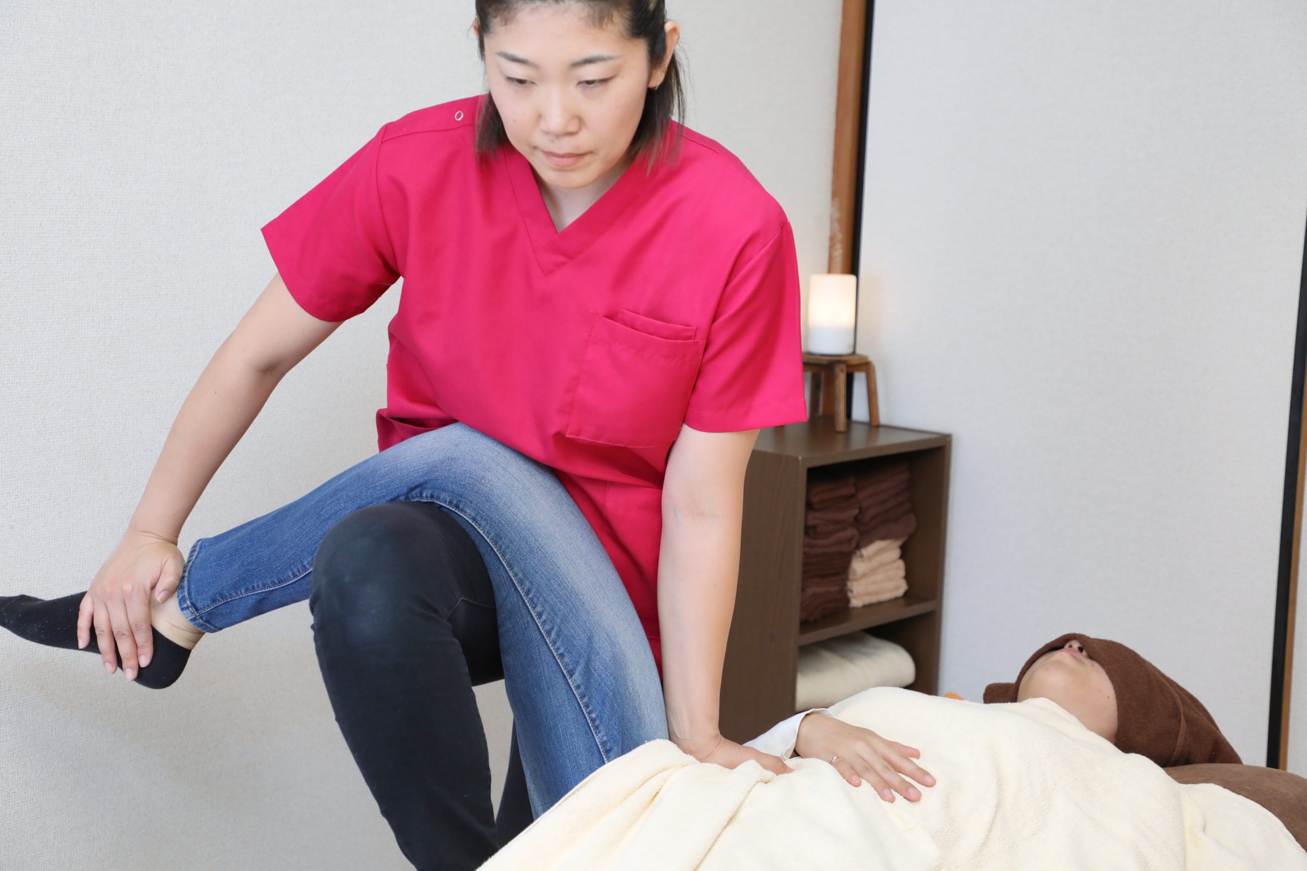 お客様自身では行えない動きをすることにより、筋肉の柔軟性や関節の可動域が広がる事が実感できます。