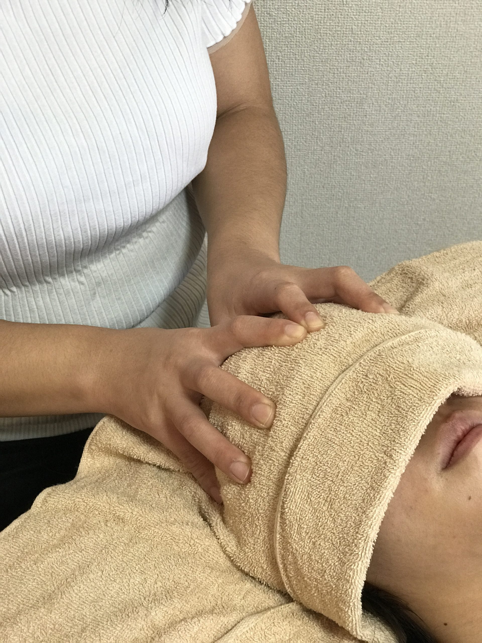 直接頭皮には触れず、タオルの上からほぐしていきます。